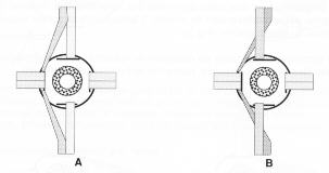résection conjonctivale sera aisée. A Incisions avec refends angulés. B