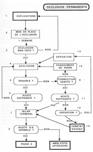 Si la correction est exacte, on ne peut continuer locclusion permanente. Il faut décider alors si lacuité visuelle est suffisante pour passer à la phase II.
