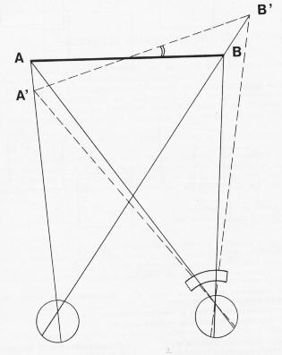La rotation du plan frontal augmente avec la distance (Fig. 3). Plus la distance est grande, plus la distorsion devient intolérable. Dans la vie courante, le sujet présentant une aniséïconie notable perd sa vision binoculaire au loin, en particulier la nuit.